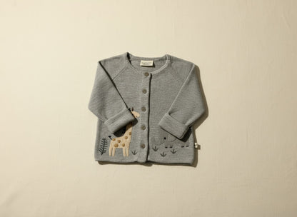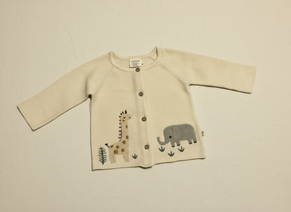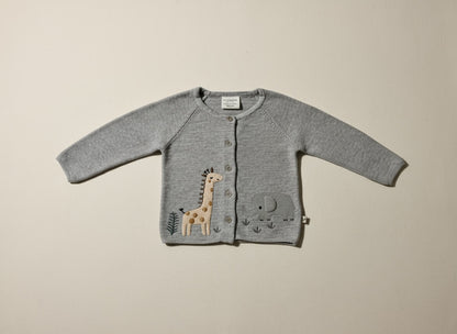 Adorably crafted from 100% organic cotton, this sweater, knit, long sleeve cardigan features charming safari animal embroidery on the front. Irresistibly cute!